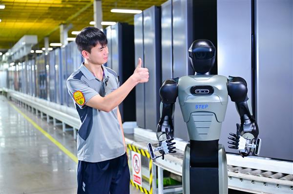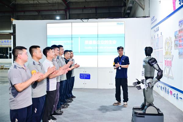 新时达人形机器人新达“入职”海尔工厂 机器人真的开始进厂打工了