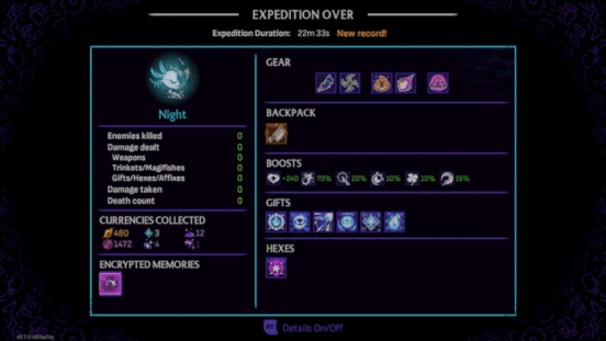 ? 结算回顾界面(跑图总结): 玩家现在每次挑战结束后,都能看到详细的统计数据面板,清晰复盘该局的伤害、击杀、构筑详情等关键信息。
