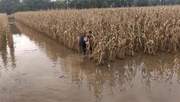 受灾地区有些村的地里积水普遍有十五六厘米深,低洼的地方水深能没过膝盖。这导致当地常用的轮式收割机很难下地工作,驶进去就很容易陷入泥里。