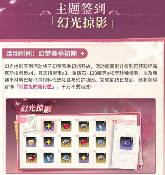 主题签到:「幻光掠影」活动时间:幻梦赛季初期