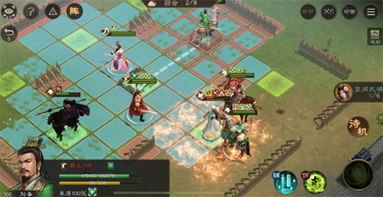 第一回合的操作较为固定。让刘备移动至地图中央的红色地块位置,无需释放技能,主要利用其被动效果提供的畜力状态。其余单位集中火力攻击当前可打击的目标,同时配合貂蝉的再动机制,使关键输出角色能多行动一次。进入第二回合后,系统会随机刷新两个新的红色地块,此时应派遣输出较低或生存能力较强的非核心角色前去踩格,确保主力持续集火诸葛亮。其他成员继续积攒怒气或准备爆发技能,争取在第三回合开始后迅速压低诸葛亮血量完成击杀。