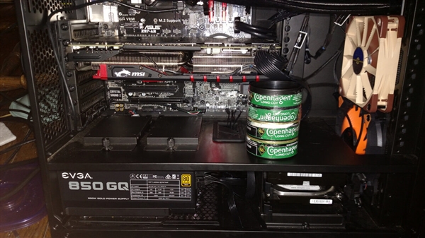 诺基亚手机仿佛天生就是为此而生,高度恰到好处地放在了显卡和机箱之间。