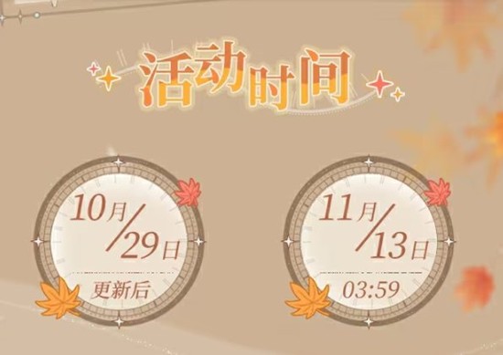 活动从10月29日更新后开始,持续至11月13日03:59。