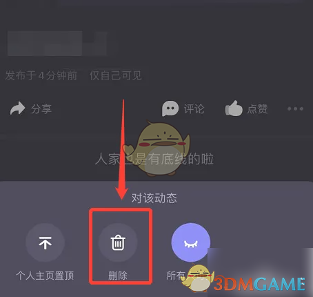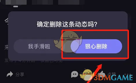 4、点击弹框中的“狠心删除”按钮,删除动态