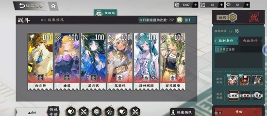 91不必多说,核心就是酒帐纱衣,但我没有69也没有31,所以一开始用的时候强度就打折扣,但依然能吊打大部分关卡,限定的强度没得说,滴漏的技能还是很厉害的,但是莫高窟没有之前那么强了,我只是习惯性带上,然后带百花和海水debuff保命,但实际上这个队伍里除了91基本没什么不可替换的。。