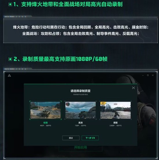 洲洲时刻工具提供了多种录制选项,包括支持烽火地带和全面战场对局高光自动录制。玩家可以根据自己的需求,选择录制全局或者高光片段,确保不错过任何精彩瞬间。此外,录制质量最高支持原画1888P/60帧,让每一个细节都清晰可见。