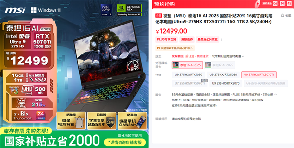 微星泰坦16 AI不仅是旗舰性价比的爆款,也是RTX5080/5070Ti高端显卡首发护航的爆款。凭借旗舰的性能、丰富的配置、以及超高的性价比,一经推出就颇受好评。结合年底双11大促,此前还没下手的玩家真心不容错过。