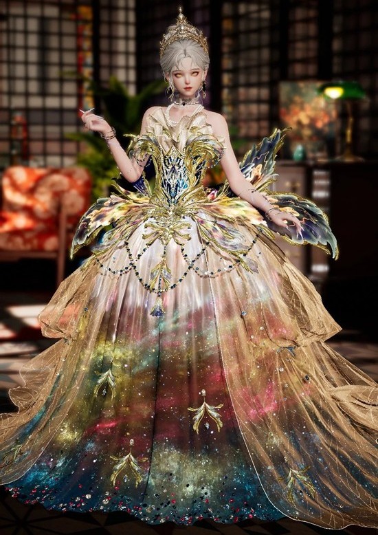 星河下的丝丝秀发被蝴蝶轻盈灵动地挽起,在幻彩中实现长发如彩虹瀑布,眼泪化作珍珠的绝美畅想。