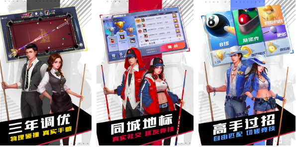 作为一款经典的台球游戏,在这里你将开启自己的台球明星之路,开启更强的逻辑思维能力,有了辅助瞄准线的加持,即使菜鸟玩家也可以逐步训练成台球高手。强大的物理引擎技术,还原了现实世界的台球滚动落袋效果,为玩家提供逼真的线上享受。丰富的球杆皮肤、更加多样化的桌球造型,满足不同玩家的视觉需要。