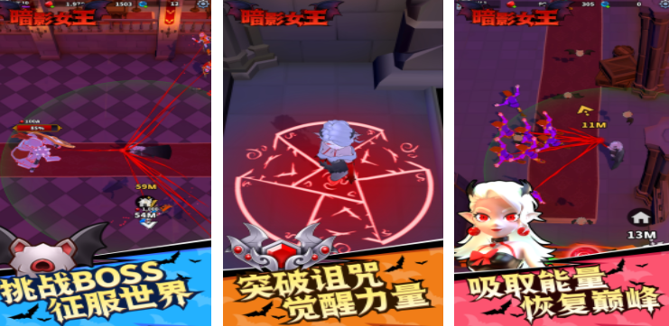 暗影女王设定了一个暗黑世界,玩家可以扮演成卡通角色,在这个童话场景里不断冒险,不同的是,里面打造的是一个暗黑童话世界,玩家需要和大量的魔物开启挑战,在对抗的过程中,既需要合理的释放技能,又要不断探索世界,寻找宝箱,用这些强烈的装备提升自身的能力,这样在后续对战的过程中,才能对抗这些boss,征服整个世界。