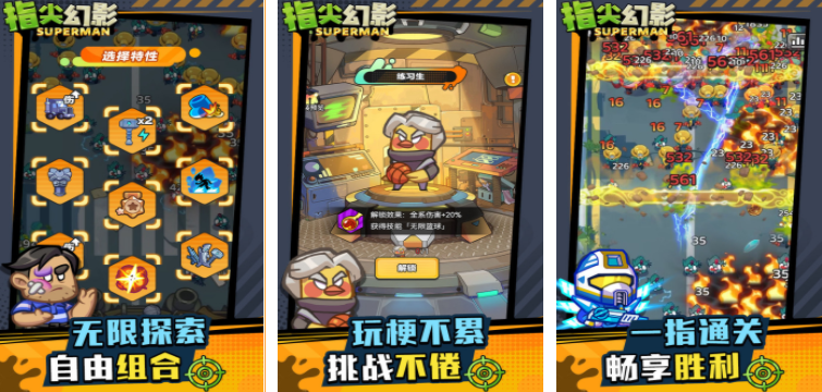 指尖幻影,融合了当下最流行的肉鸽塔防射击玩法,挑战开始之后会有大量的僵尸,玩家需要先把想用的武器放到背包,接着就可以利用背包里的这些物品开启对抗,每一局挑战的过程中遇到的敌人都不一样,除了直接使用背包里的武器之外,还会有一些随机的技能,需要根据每一局的敌人合理选择,还有多人组队模式,支持玩家和好友一同竞技。