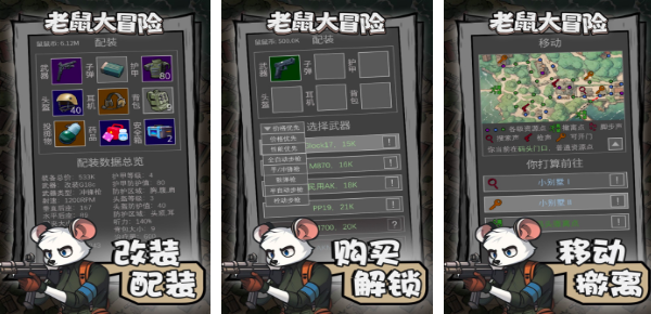 老鼠大冒险,简直就是文字版逃离塔克夫,为手残党玩家也开启一份大逃杀的欢乐。超高的爆率,新增的pvp对决模式,都是这款游戏的可玩之处。不仅如此,他高度还原了配装、任务、物品搜查等各种系统机制,让玩家轻松解锁真实体验。武器的后坐力情况,也完成了系统化的数据还原。