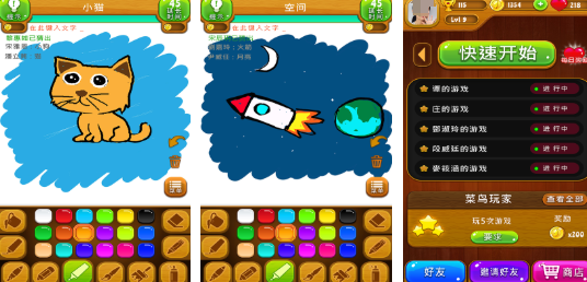 很经典的一款互动绘画游戏,画面是比较温馨的,而且还有很多的关卡。核心的玩法那自然就是根据题目去提示画画,让其他的玩家去猜测答案。题目的种类是比较丰富的,从日常物品到抽象概念全部都有。不需要画的有多专业,哪怕是抽象涂鸦照样也可以玩耍,很适合和朋友一起开黑。游戏的互动感还有趣味性是比较强的,还可以顺便学一些简单的绘画技巧。