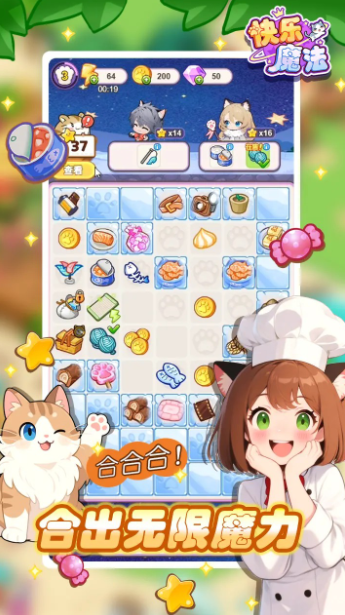 进入到快乐魔法这个游戏之后,玩家会来到一个非常梦幻的卡通场景,常经理到处都被灾难破坏,只要修复这些场景,就需要在游戏里不断完成合成挑战,每一次合成,都只需要把相同的物品拖动到另一个物品上,两个相同物品就能合成更高等级的,通过这种合成方式,玩家可以获得大量的材料,除了修建岛屿之外,还可以借助这个材料把整个环境打造的更加梦幻,每一个场景都会有不同的布置,随着闯关,玩家能够感受到的合成玩法应该会各有不同。