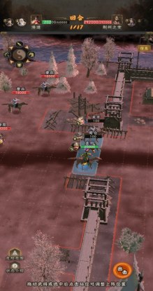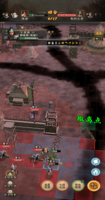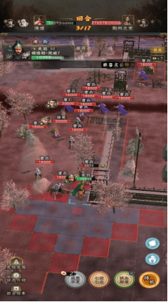【5. 麦城突围】如下图所示,本关有99回合,采用跟《官渡之战》一样的机制(我方失败可以重进,敌方期间可以恢复兵力,我方超过一小时没有重进,则关卡重置),而且地图上有很多探索点,探索他们可以得到招贤券/元宝/材料等。所以,请备好预备兵源,保证能快速重进,不给敌人回复时间。