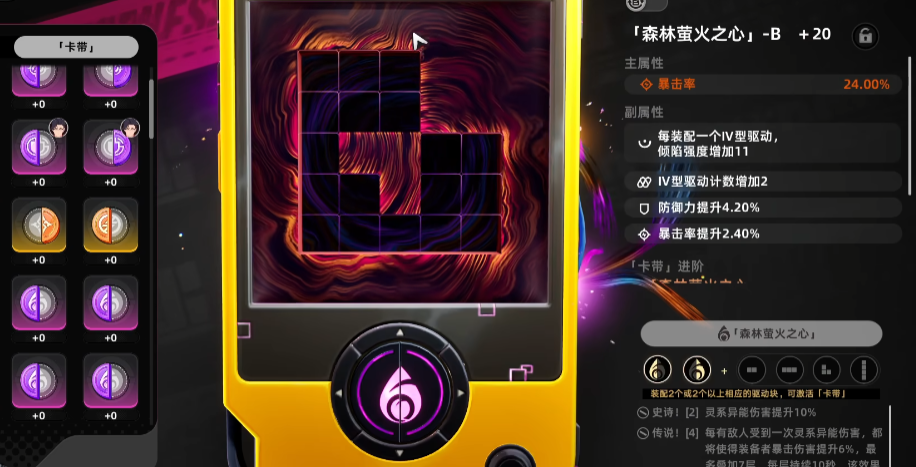 装备系统由三大部分构成:空幕、卡带与驱动块。空幕分为上下两个区域,下半部分安装卡带,需组合成完整图案方可激活套装特效;上半部分装配驱动块,其种类繁多,合理搭配才能发挥最佳性能。此外,角色命座系统允许玩家自主选择升级路径,但需注意第3层与第6层命座不提供额外属性加成。