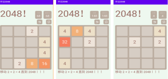 较为有趣的怀旧题材,有独特的复古风格,瞬间就会想到曾经小时候玩的2048,与经典模式确实比较相似,将两个相同数字方块合并到一起打造成为更大数字,有4×4格子布局初始随机生成两个数字,有可能是2.有可能是4,滑动屏幕将数字合并,其中加入很多扩展玩法,让2048不在单调。