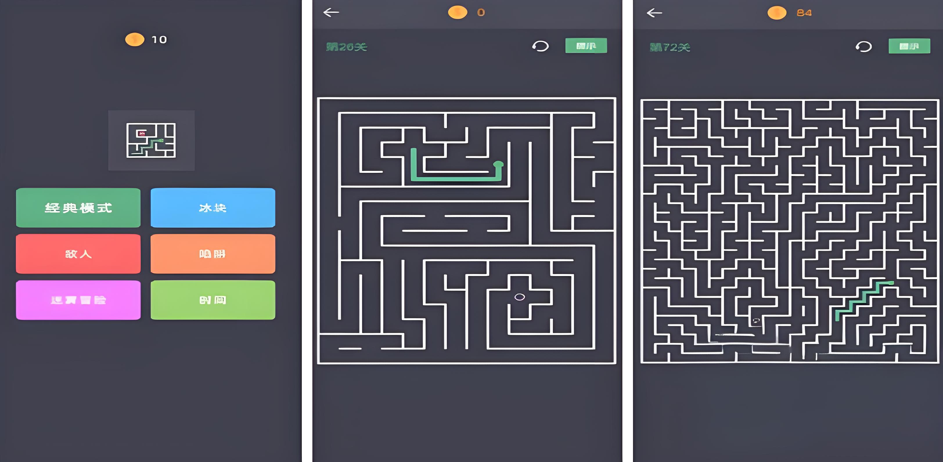 我的迷宫在单机类游戏中是一款极为经典的迷宫玩法游戏。游戏中的画风虽然都是以黑色为主,可是进入游戏后,玩家却会发现,这里的迷宫关卡难度丝毫不比联机迷宫游戏的关卡难度低。在经由各种线条制作的迷宫里面,玩家需要凭借着聪明指挥从中将迷宫的出口给找到。复杂的迷宫地图中存在着很多的岔路以及死胡同,玩家在关卡中需要有着极好的方向感以及观察力才行。