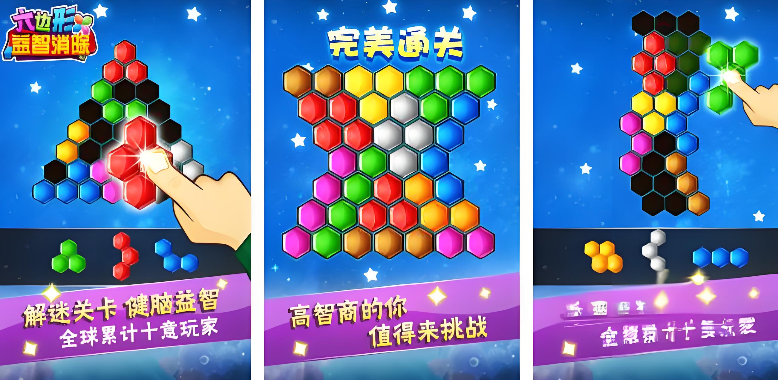 六边形益智消除和传统的消除游戏最不一样的地方,就是这里的所有图形全都是以六边形的形状出现在玩家眼前的。玩家在消除的时候,需要根据相邻相近这个规则来进行消除。别看这只是单机游戏,可是游戏的玩法对于规则策略的运用却极为注重。玩家在这里不仅需要注意消除的顺序,还需要注意每一次消除后会引发的连锁反应。