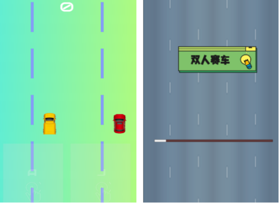 属于满足两个人可以进行赛车比赛的小游戏,相对于能满足很多玩家展开真人竞技的,由于两个人就能开启,所以在玩的过程当中比较休闲,主要比拼的就是在赛道当中,两个玩家谁获得的分数高,这样就可以在比赛当中获胜。在玩的过程中,利用点击屏幕,车辆就会不断的向前移动,要正确的控制好方向,发挥车子的速度。
