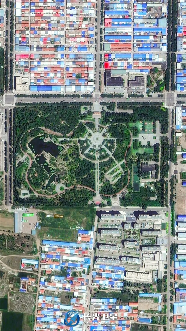卫星俯瞰山西应县:千年木塔与现代小城的交响曲