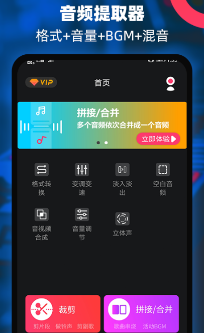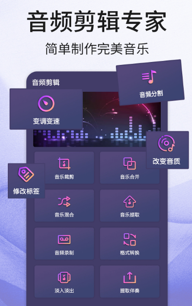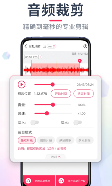 集音频提取、剪切、格式转换、变速调节于一体的多功能编辑器,适合从视频中提取音频或对已有音频进行深度处理。用户可手动设定截取区间,实现毫秒级精度控制,完成后支持一键保存并转换为常用格式,提升设备兼容性。同时提供音频拼接与混合功能,便于制作复合型声音内容,满足进阶创作需求。