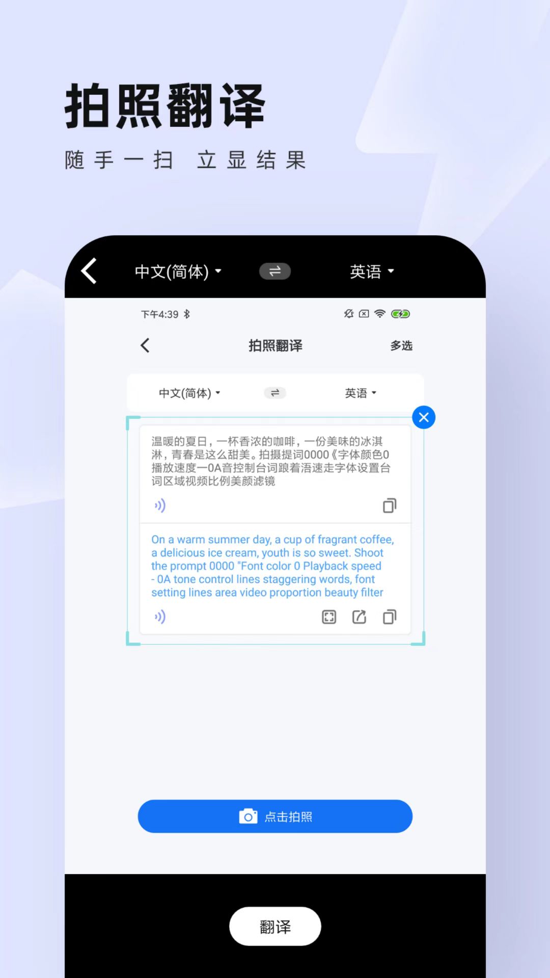 集成了文本翻译、语音输入翻译等多项核心功能,同时内置丰富的英语学习资源,便于用户边用边学。操作简单高效,无论是复制粘贴文本还是通过摄像头扫描图像,都能实现快速翻译。此外,配备的跟读对比功能有助于改善发音问题,是提升口语表达的有效辅助工具。