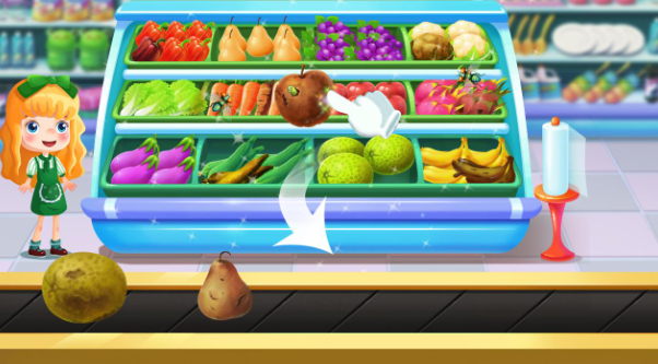 一款小宝宝游戏把真实超市搬进了手机,货架、收银台、蔬果区都分得特别清楚,商品多到让大家眼花缭乱,玩起来的时候就像真的在逛超市,而且它的玩法十分简单,就是把相同颜色的商品摆到同一个货架上,这样就可以去锻炼分类整理的逻辑能力了,遇到顾客结账的时候,需要先看一下商品的标价,然后再去算账,可以帮助顾客选择是现金付款还是扫码支付,如果算错了也没关系,可以多试几次就可以掌握加减法,每天玩一玩数学计算和规划能力都在一点点的变强。