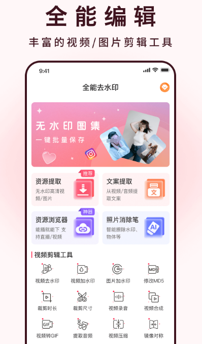 适用于清除视频和图像中不希望保留的内容,配备智能化擦除机制,只需划定区域即可自动解析背景并填补空白。兼容多个短视频及新闻类平台的纯净下载需求。集成超过12项核心编辑功能,涵盖拼接、剪裁、封面修改等常用操作。同时提供13种以上风格滤镜和多种趣味特效,丰富作品表现力。