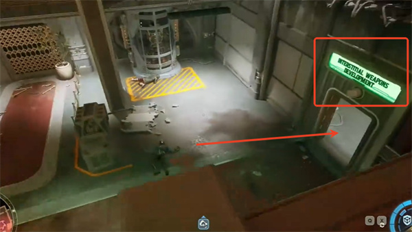 2、按图示路径前进,找到一扇可进入的门,进入内部区域。