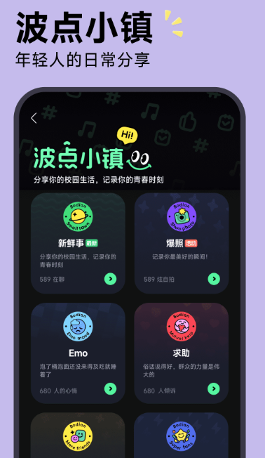 播放页面支持高度自定义设置,拥有超过3.000万首歌曲的庞大数据库,支持快速检索各类高热度曲目。系统依据用户偏好主动推送定制化内容,增强发现效率。独创沉浸式播放界面强化听觉代入感,新增“波点小镇”互动空间,鼓励用户发布校园日常或听歌心得,促进同好交流。特色音乐合照功能,让用户能与偶像虚拟合影,生成专属视觉大片。