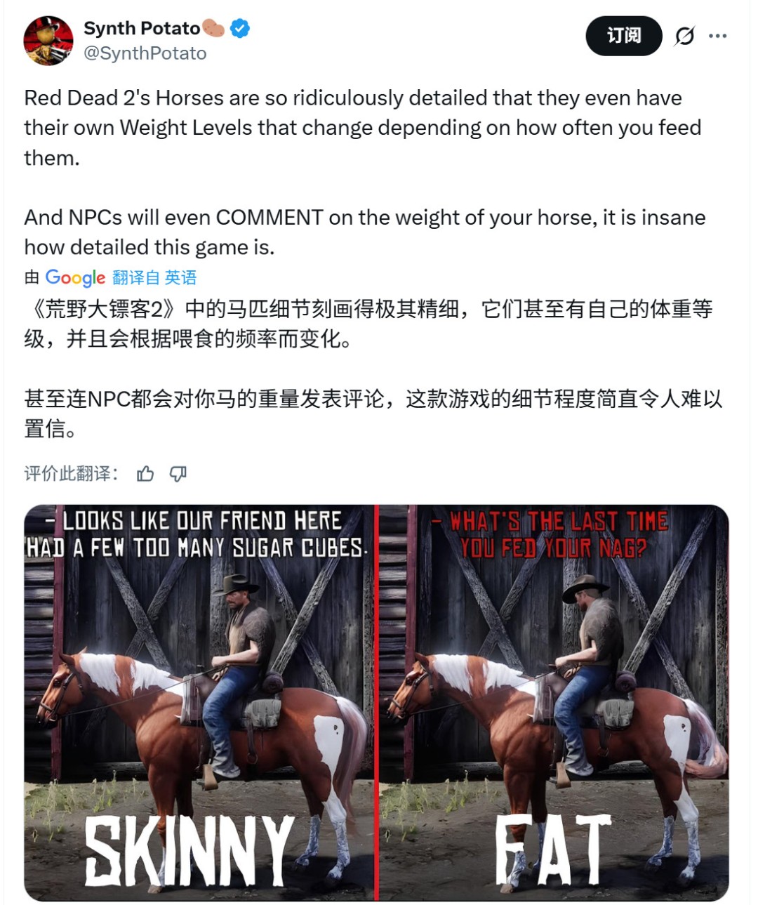 在推文发出后,其他国外玩家也表示他们非常喜欢《荒野大镖客2》的这一点,而这正是这款游戏特别之处,可以肯定的是R星会在《GTA6》中加入这类古怪但恐怖的遭遇。