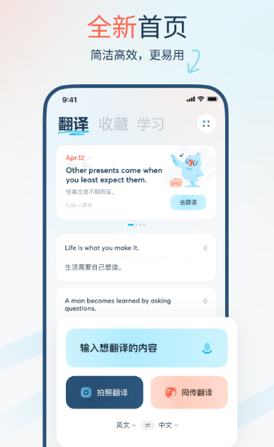 具备强大离线翻译能力的语言转换工具,适用于留学、出差、旅行等多种实际场景。采用先进翻译引擎,支持包括英、日、韩、俄在内的百余种语言互译,覆盖全球200多个国家和地区。特色AR实景翻译功能,可通过摄像头实时识别并翻译外文标识。拍照翻译模式操作便捷,拍摄后自动解析文本并生成准确译文,省去手动输入步骤。