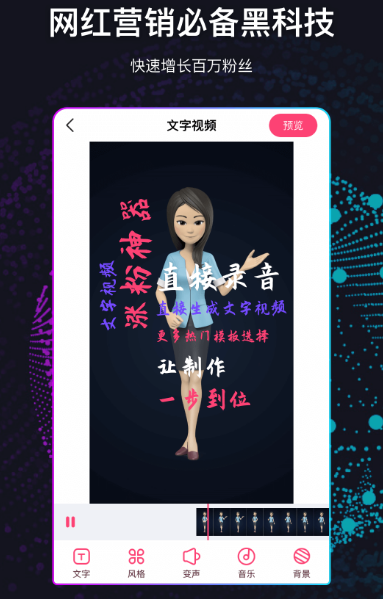 专注于将文本内容转化为可视化动态视频的应用程序,广泛应用于自媒体运营领域。支持语音自动识别为字幕,也可手动添加动态文字效果,配合丰富的动画样式与智能匹配模板,实现“一键成片”。同时提供倒放、去水印、封面设置等实用功能,无需额外设备或专业技能,仅用手机即可制作出符合平台推荐机制的爆款Vlog或资讯类短视频。