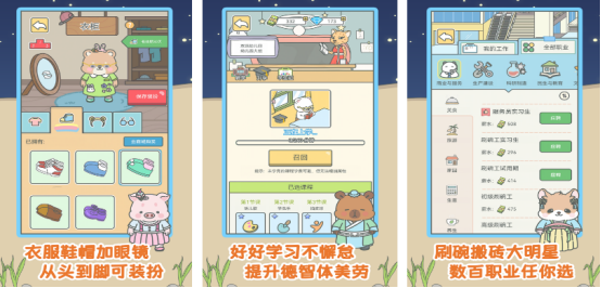 宠物类型特别多,比如有卡皮巴拉或者是可爱的小熊等等,提供的中食物特别丰富,可在时尚的鞋子或者是漂亮的衣服当中,随心所欲的去选择,可从头到脚进行装扮,让自己的宠物独具特色。当下载了这款游戏之后,就可以将宠物直接放在自己的手机屏幕上,每次在打开屏幕时,率先看到的就是自己可爱的小宠物,看到对方一天比一天可爱,等级越来越高,当等级达到一定要求后,可和其他宠物共同结婚生子,还可养孩子。