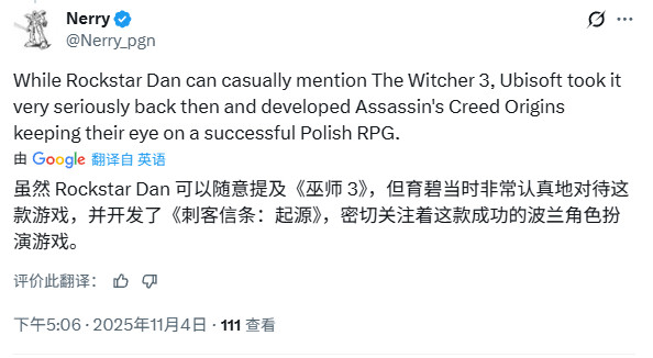 作为曾塑造洛圣都、自由城和西部边境等极具生命力世界的叙事核心人物,Houser对开放世界游戏理解深刻。他的肯定也让《巫师》等游戏再度获得关注。