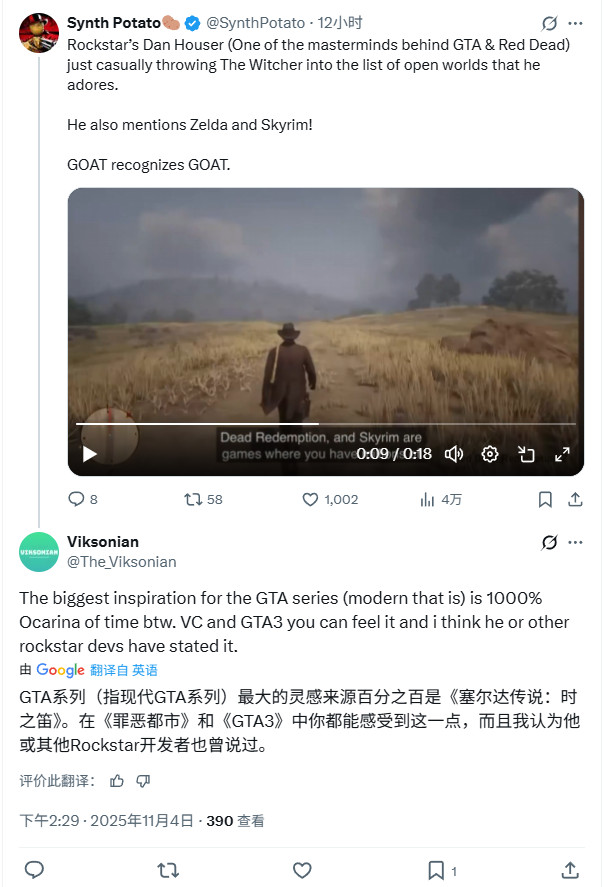 时间:2025-11-05 | 作者: | 阅读:0《GTA》与《荒野大镖客》系列灵魂人物Dan Houser近日在一次谈话中,随口提到自己最欣赏的开放世界作品名单,其中不仅包括《塞尔达传说》和《上古卷轴5:天际》这样的经典之作,他还特别提到了《巫师》系列。这一评价引发玩家热议,被网友戏称为“GOAT认可GOAT(传奇认可传奇)”。