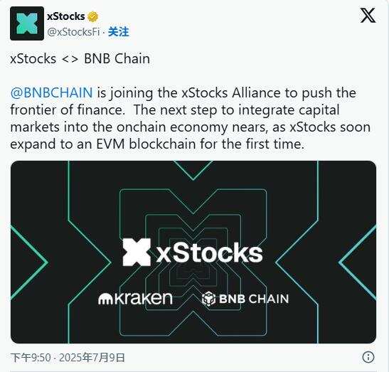 撰文前一天,xStocks 宣布将扩展到BNB 链上。