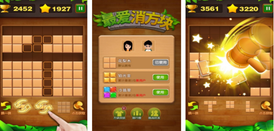 精美的游戏画面,让整款游戏更加有吸引力,很多玩家在玩过之后都会欲罢不能,其中也有多样化的图案,比如有花梨木或者是铂光金等等,你可以根据自己的喜好随意选择,在关卡闯关时都会提供两种辅助的道具,帮助玩家轻松突破记录。