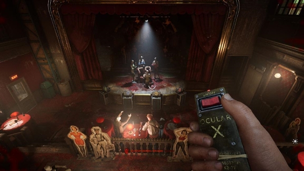 本作的视听设计延续了系列一贯的美式邪典风格。黑色环境下玩家仅能依赖夜视仪探索区域,其诡异绿色滤镜与动态模糊效果还原了前作”摄像机视角“,强化了游戏的不安感和诡异感。而稀缺的电量资源又迫使玩家不断切回黑暗视角——光影渲染下的黑暗场景极具冲击力:镜子、水面等反射表面能实时呈现怪物扭曲的阴影,立体的怪物脚步声、低吼声、环境碰撞声设计,迫使玩家在黑暗中谨慎探索,配合大量的Jump Scare(跳脸)设计,使玩家的每一次移动都在挑战心理极限,营造除了极致窒息的恐怖体验。