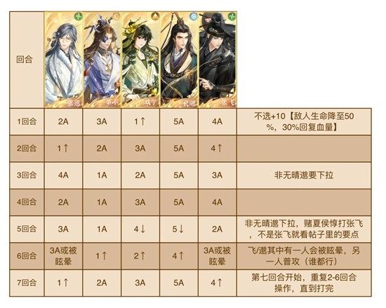 1.夏侯惇开大回合打张飞,按表格里面操作
