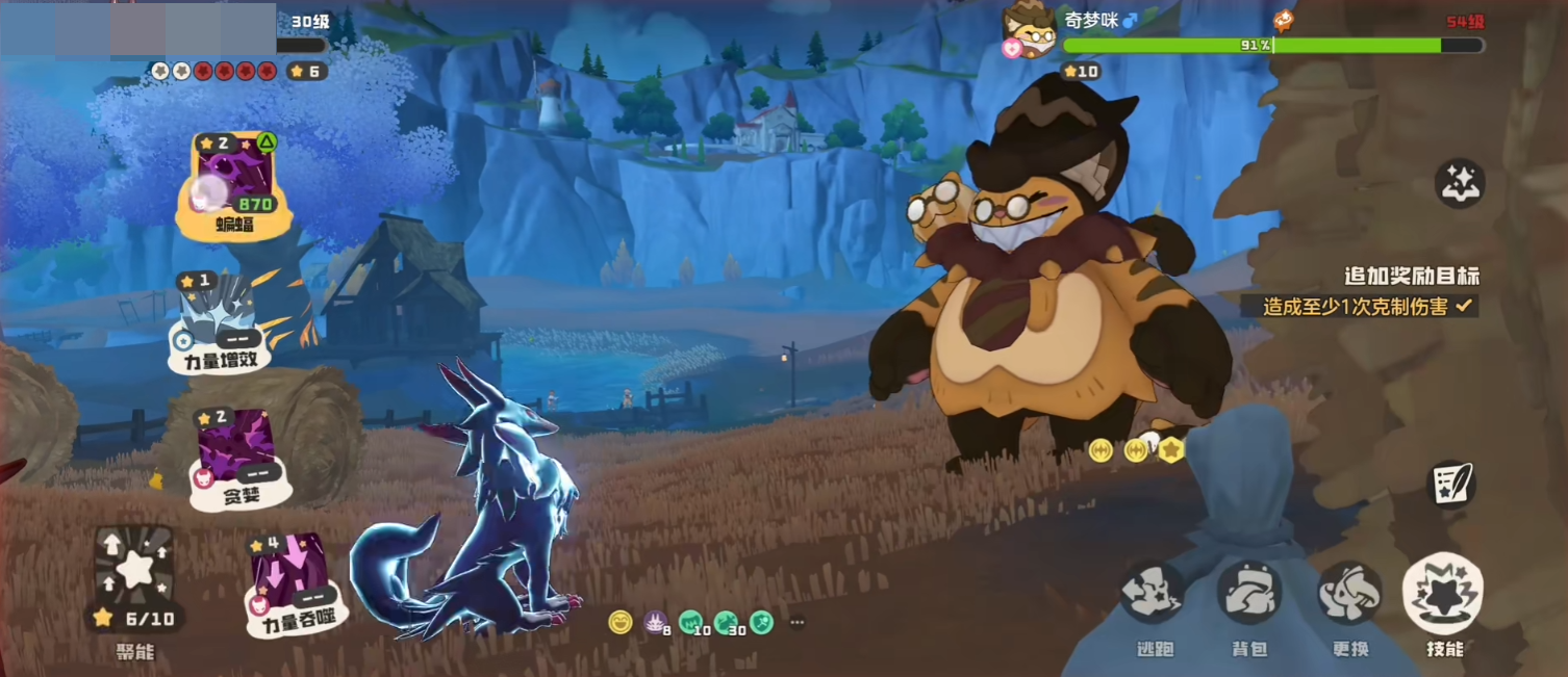落地初期,奇梦咪会有连续两个回合的高度眩晕,这是输出的最佳窗口期。建议携带恶系精灵出战,利用属性克制优势打出高额伤害。进入常规回合后,推荐使用4星暗系技能持续压制。当其血量降至一半时,将迎来一次四连击机会,此时连续施放“暗突袭”可实现高效斩杀。若未能在此阶段完成击杀,奇梦咪将启动多种回血机制,极易拖入持久战,大幅提升战斗难度。