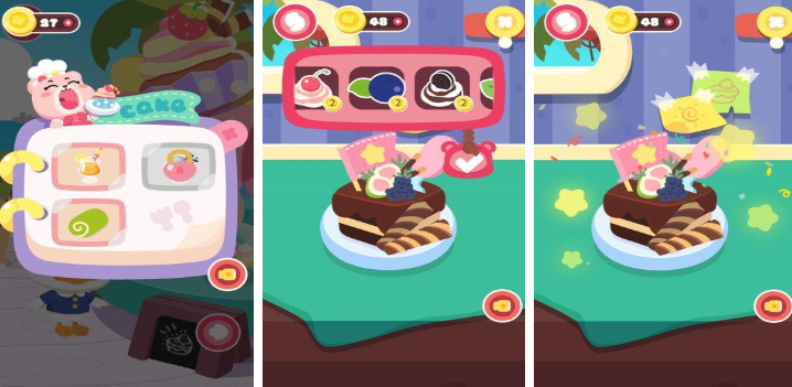 这是一款集创意设计与店铺运营于一体的游戏。玩家作为蛋糕店主,接收顾客订单后确定尺寸与造型,随后进入装饰环节。完成后选择合适的包装盒与丝带进行封装,最后交付商品。整个流程涵盖客户需求理解、审美表达与服务意识培养,适合启发孩子的综合能力。