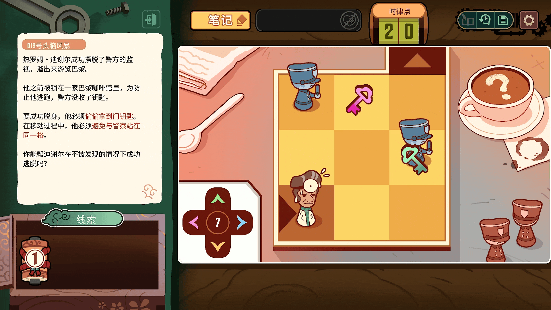 游戏包含逻辑推理、图像解谜、机械构造等多种谜题,全面考验你的推理、观察、甚至是审题能力,堪称“行测题库”。好在游戏内自带”打小抄“功能,只需花费点数即可获得提示,让你的解谜之路畅通无阻。