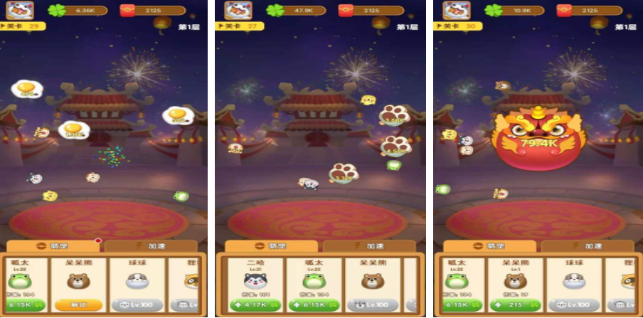 这是一款主打治愈系体验的游戏,当关卡开始后,大量外形圆润的可爱小动物会从空中掉落。玩家通过点击屏幕使它们不断弹起,形成连锁弹跳效果。若场景中出现敌对怪物,只需用弹跳的小动物撞击即可削减其生命值,直至完全清除。每个关卡的敌人类型和出现规律均不相同,带来多样化的对抗节奏,非常适合用来缓解日常压力。