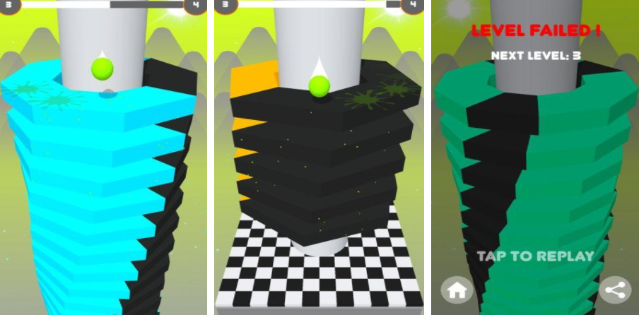 该游戏操作极为简便,核心机制围绕一根旋转的圆柱体展开。柱体表面设有多个平台,其中大面积区域为安全区,可供小球稳定弹跳;而部分边缘带有鲜艳色彩的区域则为触发失败点。玩家需通过滑动屏幕控制圆柱的转动方向,引导小球准确落在安全平台上,并避免触碰危险色块。随着关卡深入,平台间距与旋转速度都会变化,考验玩家的预判与操作稳定性。