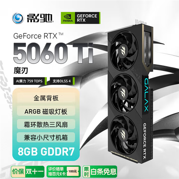 影驰 RTX 5060 刃 V2 OC系列显卡:搭载8GB GDDR7显存,畅享1080P高帧游戏体验,二代霜环风扇保障稳定运行,活动价2499元起;
