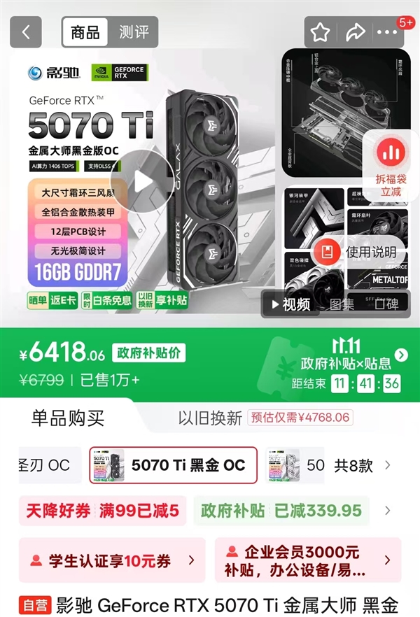 满一件即可享用,最高减五百,涵盖显卡型号为RTX 5060Ti/ RTX 5070/RTX 5070Ti