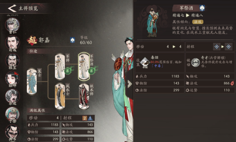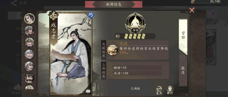 总体来看,戏志才虽非一线主将,但在中后期作为副将表现极为出色。培养过程中无需急于升星,战法等级达到7级后即可展现出较强的实战价值。合理运用其机制,不仅能在常规对局中压缩对手操作空间,也能在高强度对抗中打出稳定输出,是值得深入研究与应用的战术型武将。