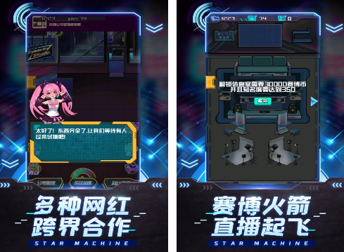 设定在2077年的未来赛博都市,游戏融入了短视频、直播等当代流行元素。玩家从零开始创办传媒公司,签约不同类型的网络达人,利用他们的特长策划内容,实现流量变现。通过跨界合作与创意营销,不断提升直播间观看人数,打造全网最受欢迎的头部主播阵容。